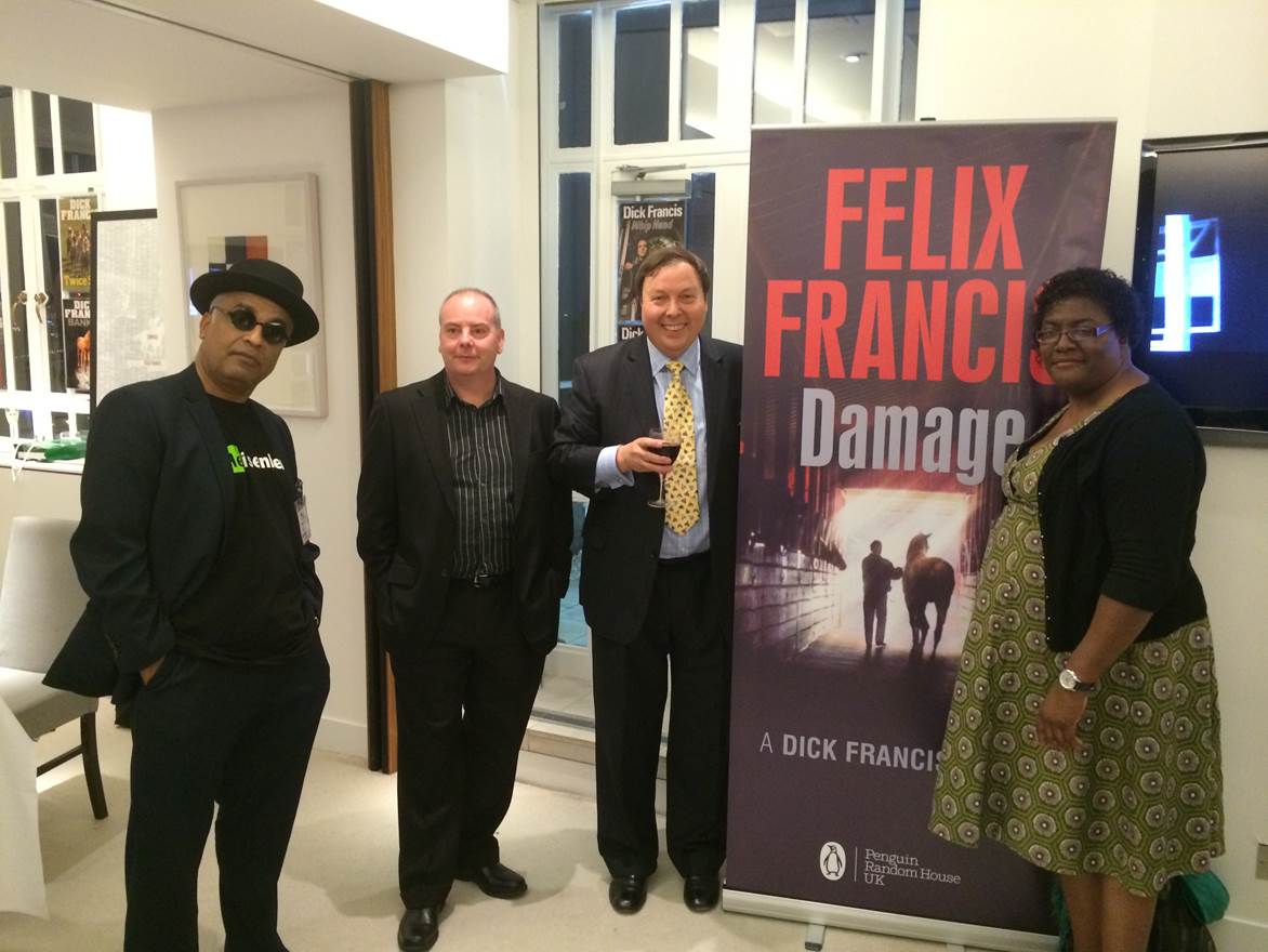 The Shots Team of Mike Stotter, Ayo Onatade, Robin Jarossi and Ali Karim joined many colleagues and friends from the world of Crime / Thriller Fiction [and the equestrian world] to celebrate the 50th Novel from the Stables of Dick and Felix Francis. The celebration was hosted at Penguin Publishing Offices on The Strand in London on the 10TH of September.